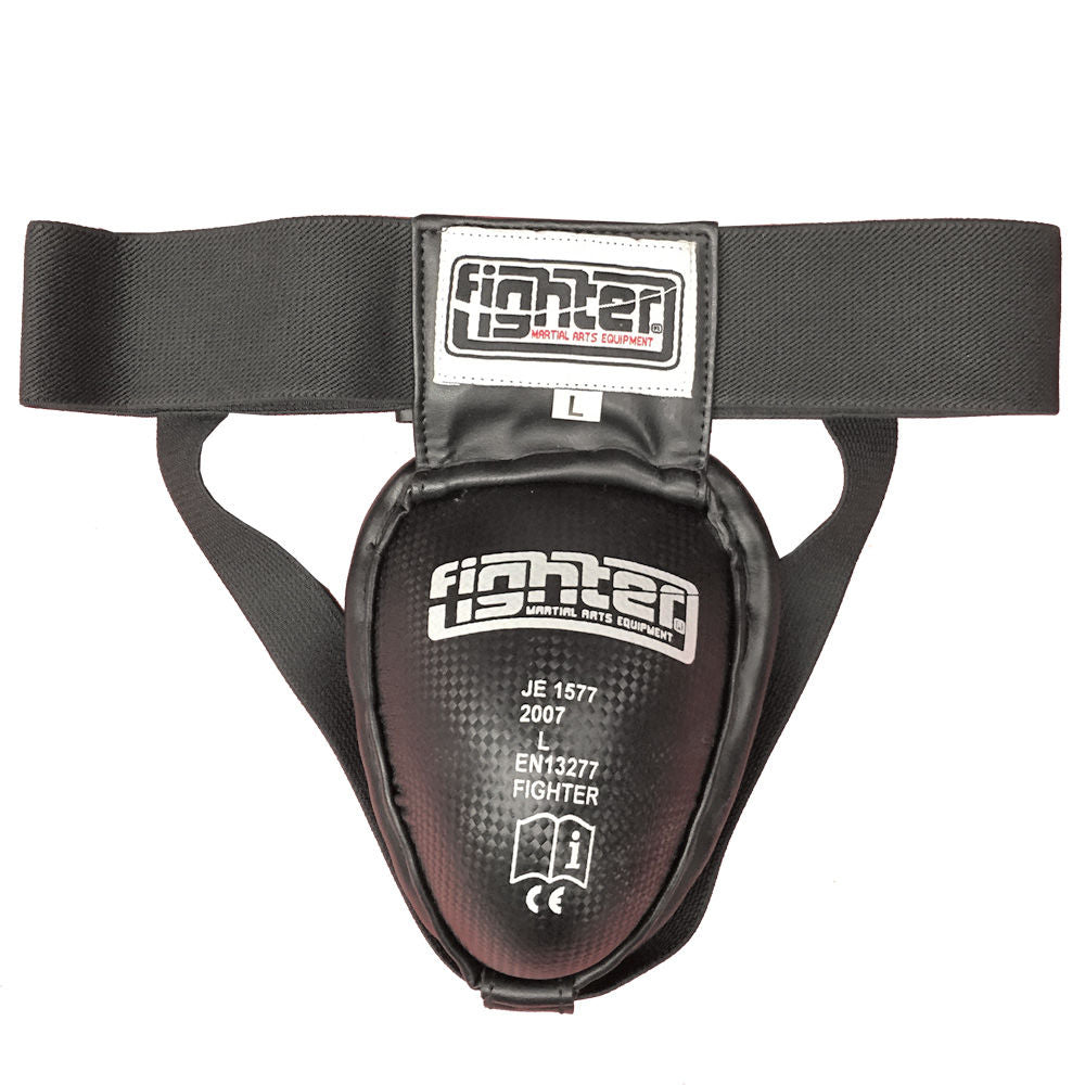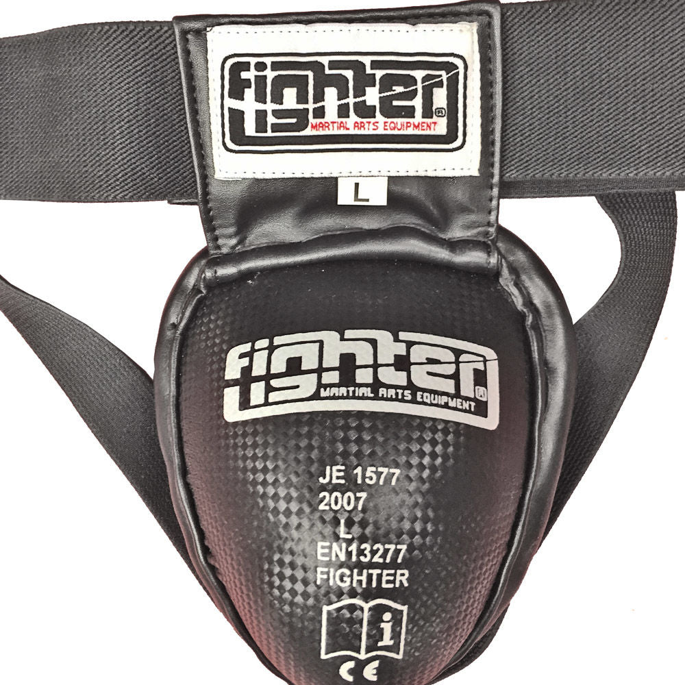 A new addition from Fighter for groin protection. The classic steel resin molded cup has be modified to be worn with a modern jock strap instead of the traditional 3 string models.