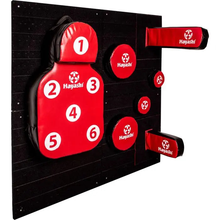When you have the boards attached to the wall you can place the shields and mitts wherever you want and make a good placement for your technique or combination. The mitts and shields are made of durable and washable material and equipped with velcro all over the back side which can be very easily attached to the Power Wall boards.