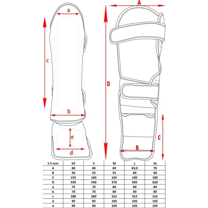 Low kicks are a great styling tool to unbalance your opponent. With the WAKO “Lowkick” shin and instep guard you are perfectly protected during your attacks. With padding of high-quality IMF foam and a featherweight weight of only 440 g per schooner, you can compete properly. You will not be affected by this wearing of the protective equipment with this drawn from outside to inside leg technology. Fake leg and instep protector are connected by a flat neoprene protective lip and flow into each other fluently. Due to their excellent protective effect, this set of shinbone and instep protection is approved by the World Association of Kickboxing Organizations and is available in the competition colors blue and red.