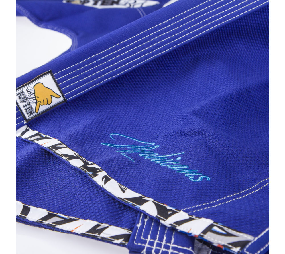 This high-quality BJJ TOP TEN competition Gi with its extraordinary "Mohicans" design have been developed and produced with the support of BJJ experts and according to the specifications of the IBJJF. Also available in white and black.