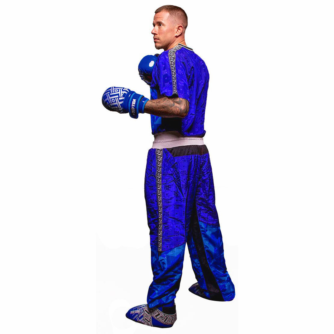 Brings together what belongs together. The long “Prism” kickboxing pants by TOP TEN combine comfortable casualness with the demands on functional sportswear. There is also an incomparable style with a graphic “Prism” print and a woven TOP TEN structure. The straight cut of the pants has an extra kick insert in the crotch so that the “Prism” can withstand extreme loads. The mesh inserts in the inner leg area and on the back waistband ensure great wearing comfort. A special dividing seam sets a visual accent and guarantees a comfortable fit on the leg without twisting or sliding up. The finishing touches for an athletic look are brought to the “Prism” kickboxing pants by the woven tape on the outer seam.