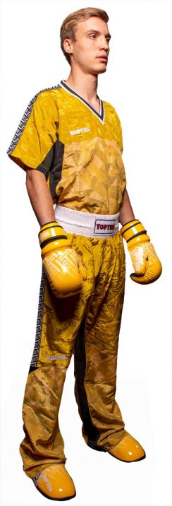 Really uncomplicated, the TOP TEN “Prism” kickboxing jacket. The shirt is a timeless companion of your sports career with its offset V-neck neckline and the contrasting woven ribbon. Like the colors, the graphic print has been evaporated into the light polyester fabric in an environmentally friendly manner and impresses its high brilliance and resistance. Thanks to the use of airy mesh strips in the arm and armpit area, the temperature management in the “Prism” remains balanced at all times. Extra flat seams and reinforced hem edges give the regular fit shirt an elegant drape, despite the smooth fabric. The first-class quality of the “Prism” kickboxing jacket supports you in performing your sport and guarantees unique comfort even at the limit of stress.
