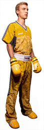 Brings together what belongs together. The long “Prism” kickboxing pants by TOP TEN combine comfortable casualness with the demands on functional sportswear. There is also an incomparable style with a graphic “Prism” print and a woven TOP TEN structure. The straight cut of the pants has an extra kick insert in the crotch so that the “Prism” can withstand extreme loads. The mesh inserts in the inner leg area and on the back waistband ensure great wearing comfort. A special dividing seam sets a visual accent and guarantees a comfortable fit on the leg without twisting or sliding up. The finishing touches for an athletic look are brought to the “Prism” kickboxing pants by the woven tape on the outer seam.