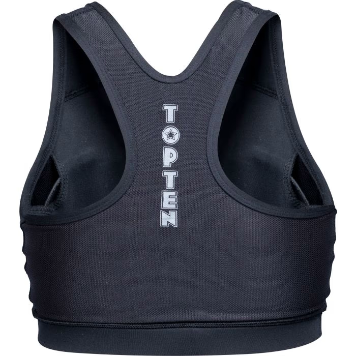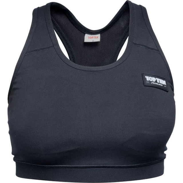 The TOP TEN Sports Bra “Fraction” has everything firmly under control. It scores points with an extra elastic fabric that unconditionally surrenders to all your movements. The “Fraction” is also 100% opaque and equipped with removable soft shells. The shoulder straps converge at the back, resulting in noticeable weight relief.
