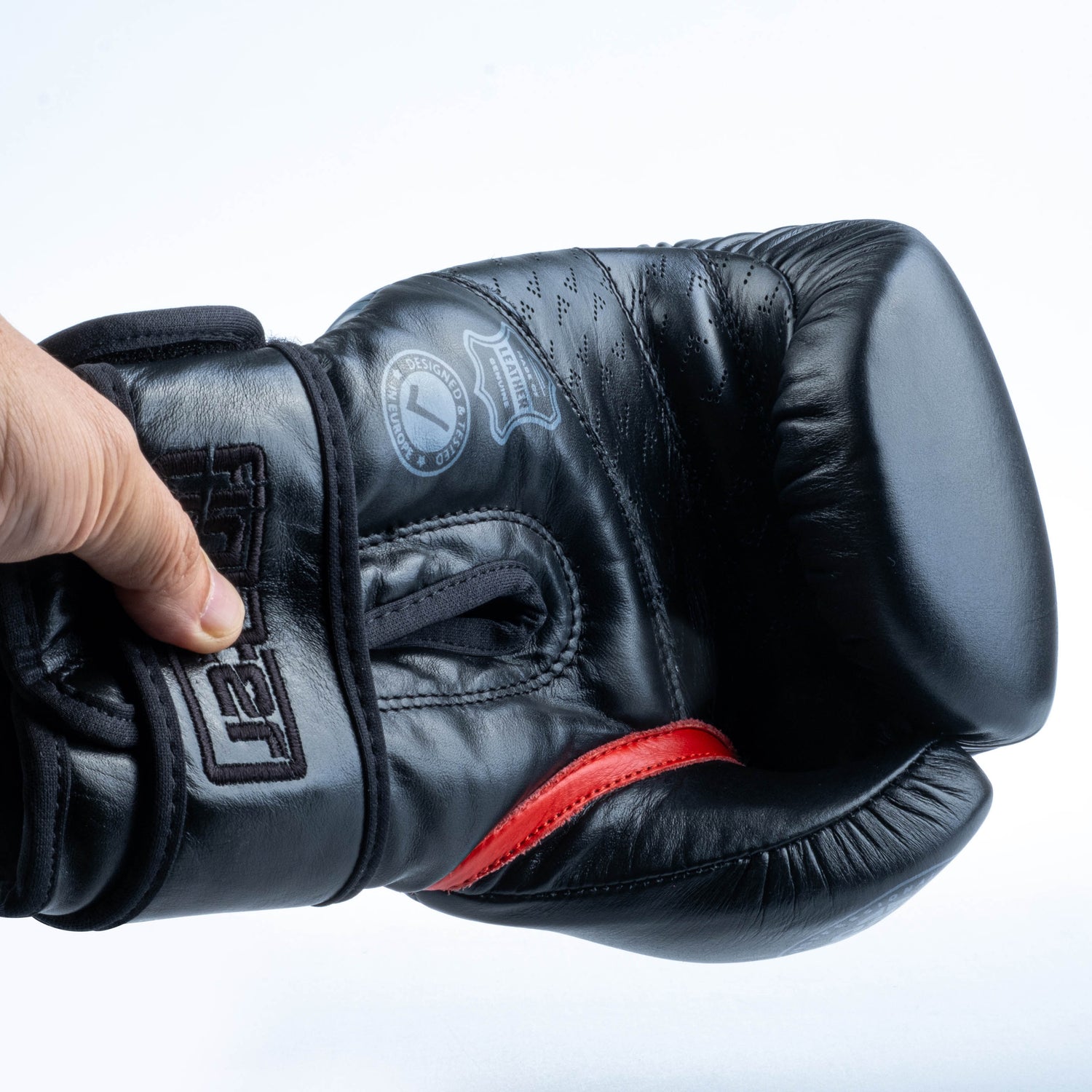 The gloves are hand-stitched from high-quality leather. The Velcro strap is wide enough for a secure fit and wrist support.