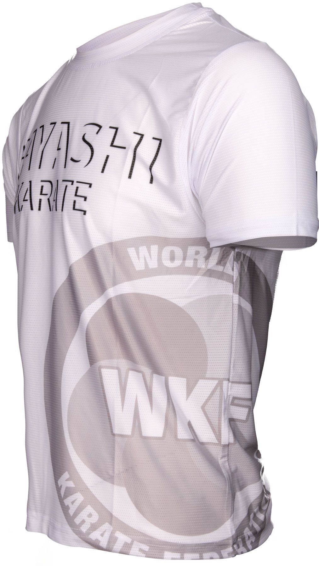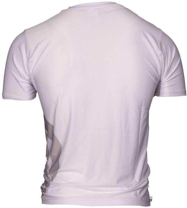 The functional shirt “WKF Shade” falls lightly and loosely over your shoulders and looks classy in its brilliant white and shaded print. The breathable fibers in the “WKF Shade” T-shirt keep you all-around protected from sweat, as moisture and heat are immediately dissipated to the outside. The soft collar on the neck does not rub and your “WKF Shade” stays in top shape thanks to the reinforced edges. With its casual cut, it is comfortable to wear in the sports and leisure sector but can also be seen as trendy streetwear when combined with jeans and sneakers.