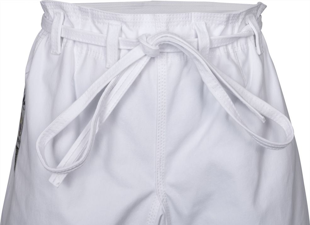 Here you will meet the popular Karate-Gi classic Bunkai in the 2.0 version. The highlight of the Hayashi Kata-Gi collection is now even more optimally tailored to your needs in sports, thanks to slight changes. The natural strengths of cotton are balanced with the functional properties of synthetic fibers. In “Bunkai 2.0,” you can also feel the power of the material on your skin, with which you bring the typical “snap effect” to the mat. Classic specifications, such as the lacing on the jacket and trousers, are also retained in the “Bunkai 2.0” version. With much freedom of movement, the snow-white Karate-Gi in Japanese cut supports you in executing your forms. High-quality embroidery work in the chest and shoulder area stylishly rounds off the overall concept of the WKF-approved Karate-Gi “Bunkai 2.0”.