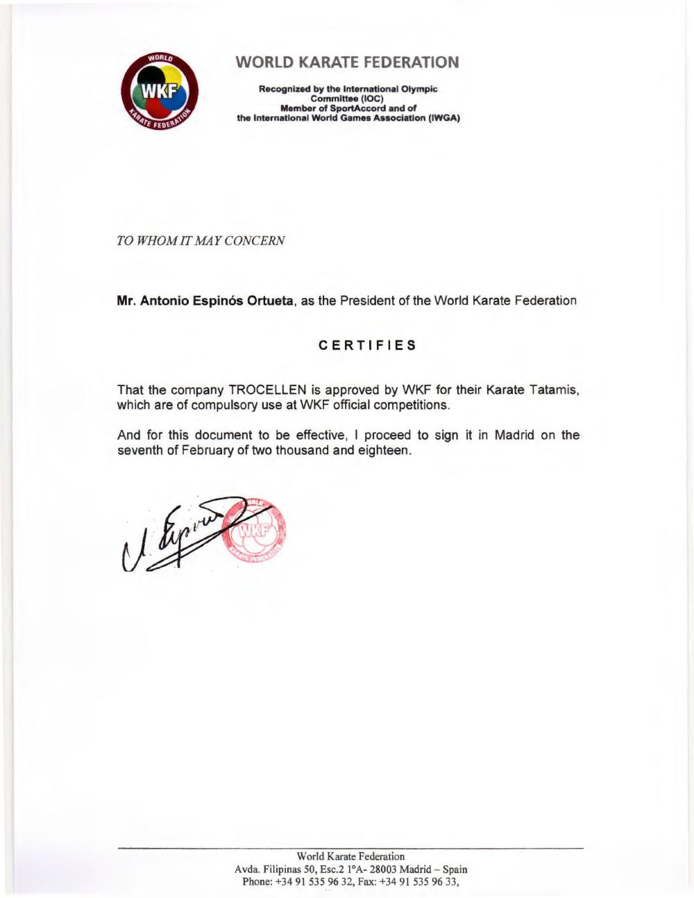 - Laser printed WKF logo and ProGame Tatami by Trocellen references
