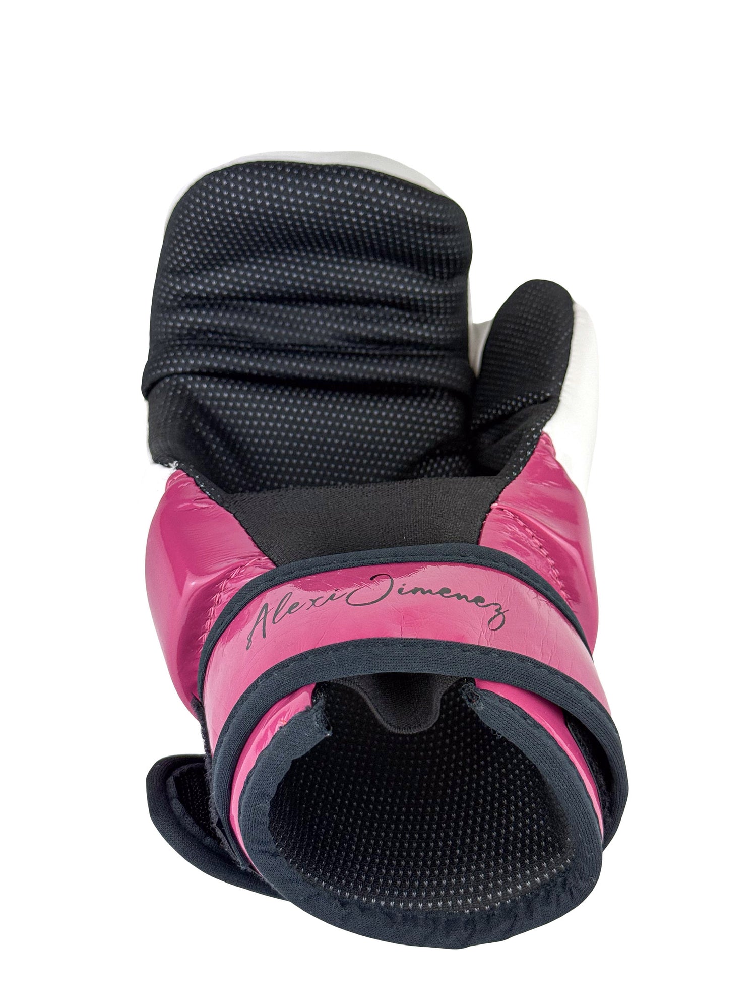 Step into the ring with Alexi Jimenez’s limited-edition gloves, where bold colors meet elite performance. Featuring a striking white base with vibrant pink and green accents, these gloves don’t just perform—they make a statement. The ultra-light, open-palm design keeps your hands in the perfect striking position, while secure finger and thumb flaps lock in a precise fit.