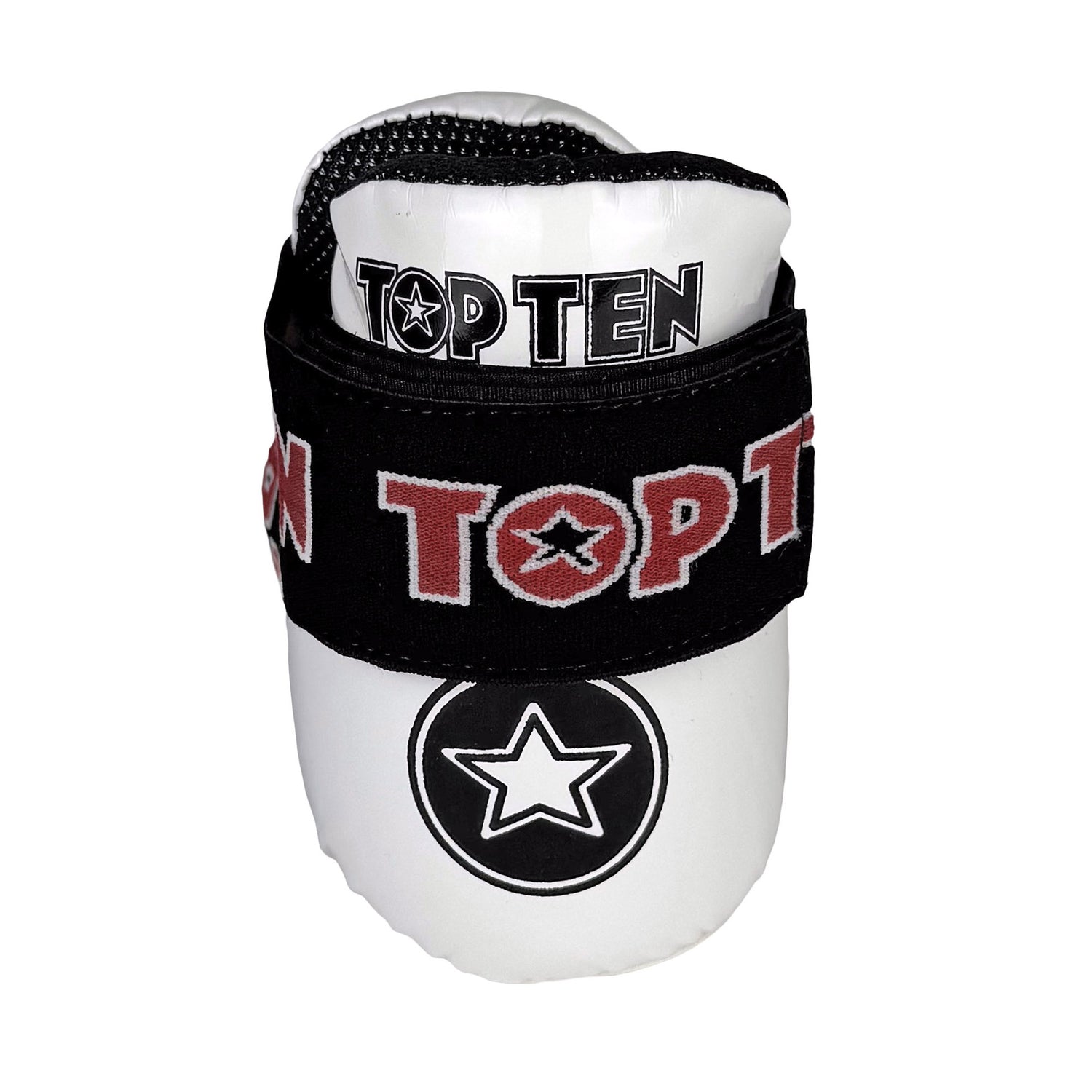 Los protectores para pies Glossy "Star & Stripes" de TOP TEN garantizan un aspecto fuerte . Los protectores son los compañeros perfectos para los practicantes de kickboxing y absorben la energía rápidamente gracias a la espuma PPS amortiguadora . En particular, la zona sensible del empeine y del tobillo está perfectamente protegida y te puedes concentrar completamente en tus movimientos. Para garantizar que nada se resbale , los protectores para pies se mantienen en su lugar mediante una correa de sujeción flexible con cierre de velcro . Para garantizar que disfrutes de un uso prolongado, la correa fija se puede cambiar en cualquier momento . Otro punto a destacar de estas ligeras protecciones para los pies es sin duda su diseño deportivo con franjas laterales y la conocida marca TOP TEN como estrella . La zona del tobillo acortada facilita enormemente la colocación de una espinillera .