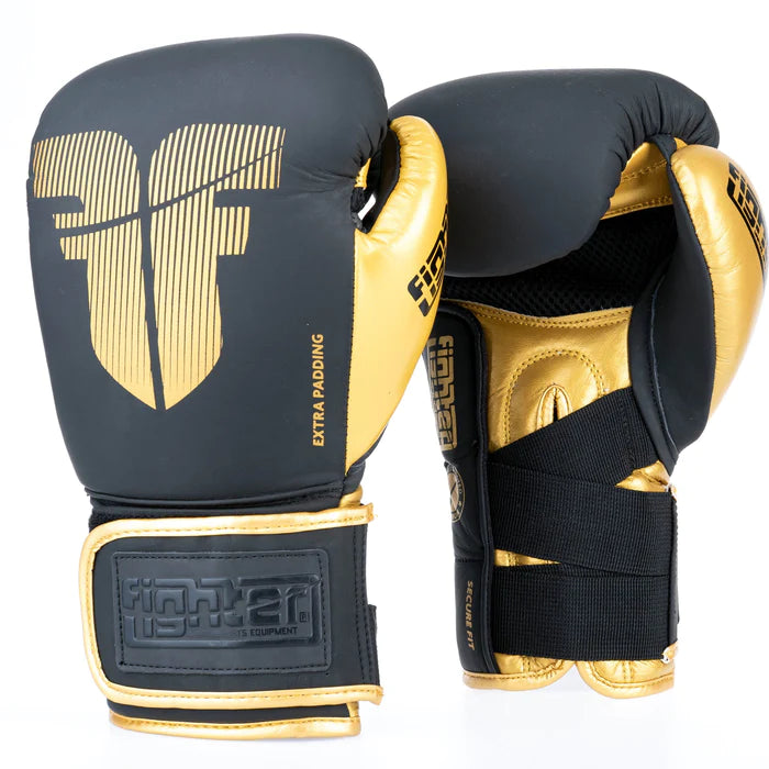 Fighter Boxing Gloves Secure Fit - black/gold
